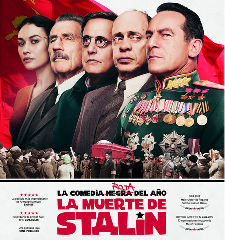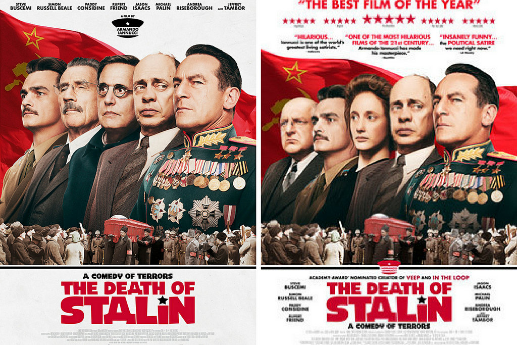 Всё дело в том, что изначально для продвижения "Смерти Сталина" было сделано несколько вариантов плаката. Они в общем то похожи, но изображают разных героев фильма. Некоторые из них использовались в конкретных странах, где те или иные актёры считались более кассовыми.