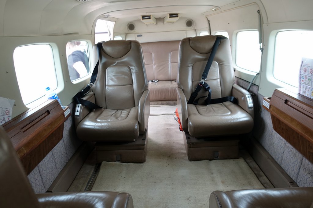 20. Вот как выглядит салон изнутри. Там четыре ряда по два кресла, шесть из них смотрят вперёд, и два - назад. На борту уже есть два человека, они летели из предыдущего аэропорта. А отсюда, из Сигирии забирают только меня. Мне даже стало как-то неловко - целая посадка-взлёт из-за одного меня, и всё это за цену одного билета (около $200).