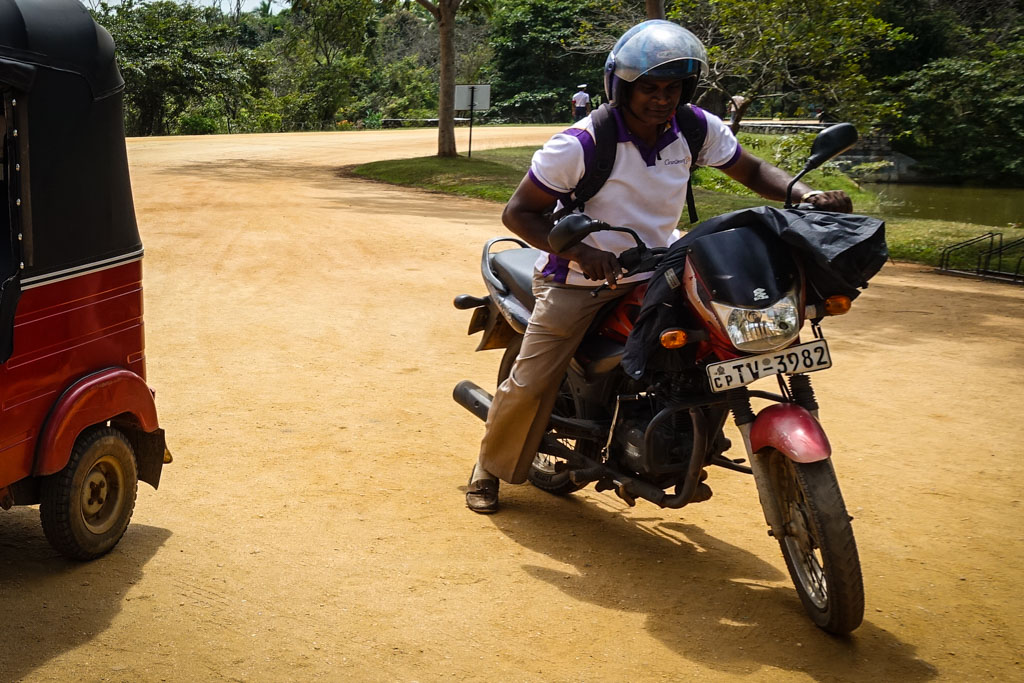1. Итак, за два часа до вылета, я пошёл поулицам улице Сигирии искать тук-тук. Мне сказали, что цена до въезда на базу должна быть где-то 500 рупий (чуть больше $3). Я нашёл тук-тукщика, который тут же сказал, что готов довезти меня за тысячу.