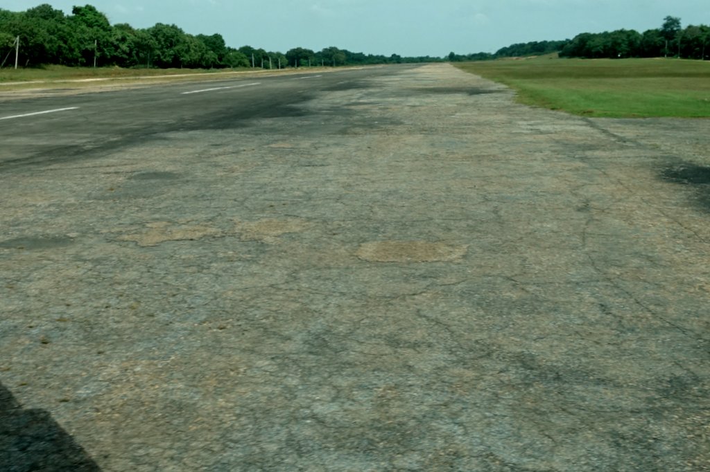 14. Через минут пять мы приехали к взлётной полосе. Она была очень покоцанной. Я честно говоря, всегда думал, что взлётные полосы должны содержаться в идеальном состоянии, но тут явно давно было пора всё переасфальтировать.