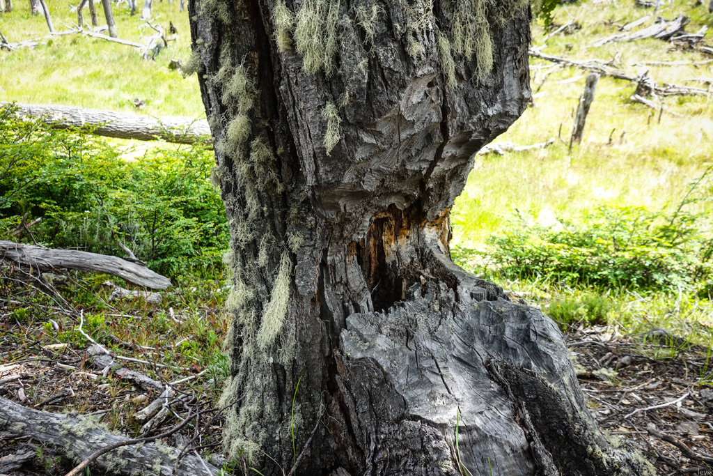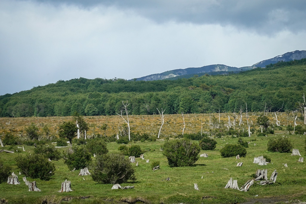 А главное - они продолжали строить плотины, и затапливать огромные поляны. Хрупкие местные деревья не выдерживают этого - их корни недостаточно глубоко уходят в почву, да и вообще они не привыкли стоять под водой. Так что теперь в лесах Огненной Земли стоят участки вымершего леса. Бобры то уже и перекочевали из этих мест, но деревья будут восстанавливаться ещё несколько веков.