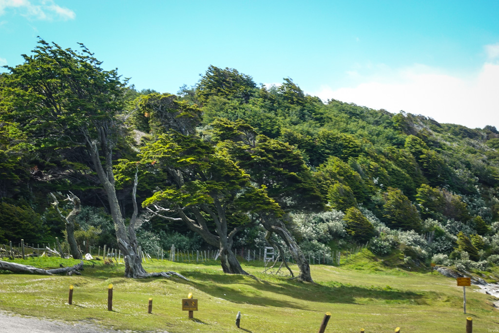 16. Ветры здесь постоянно дуют в одну и ту же сторону, в результате получаются вот такие "зачёсанные" деревья.