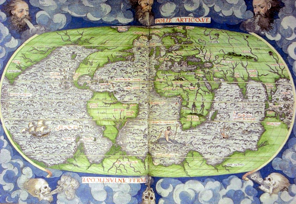 4. На севере от них была Южная Америка, а землю южнее они считали частью неведанного континента. Скорее всего, Того Самого неведанного Южного Континента, о существовании которого писал ещё Птолемей! (На этой старой карте юг изображён наверху):