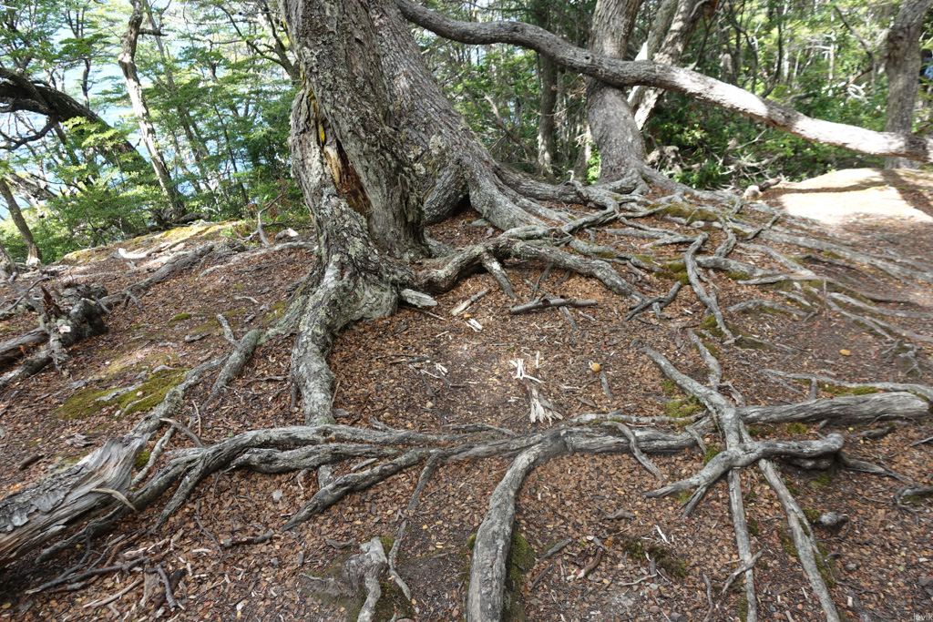 13. Почвенный слой здесь очень тонкий, так что корни этих деревьев вынуждены стелиться по земле. Уходить вглубь не получается, там камень.