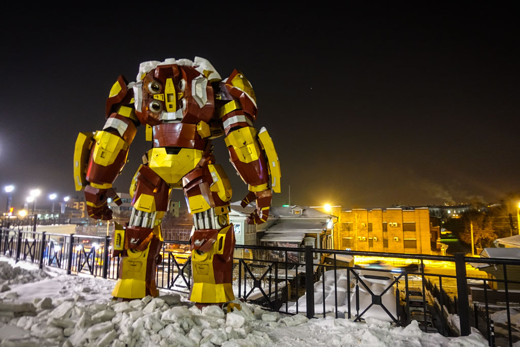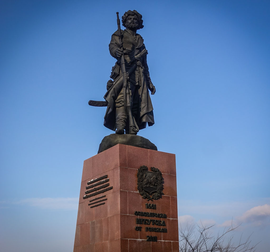 17. В 1661 году Похабов поставил здесь острог, который впоследствии превратился в современный город. На постаменте написано "Основателю Иркутска от горожан". Я заметил, что скульптурный основатель вооружён до зубов. Помимо внушительной