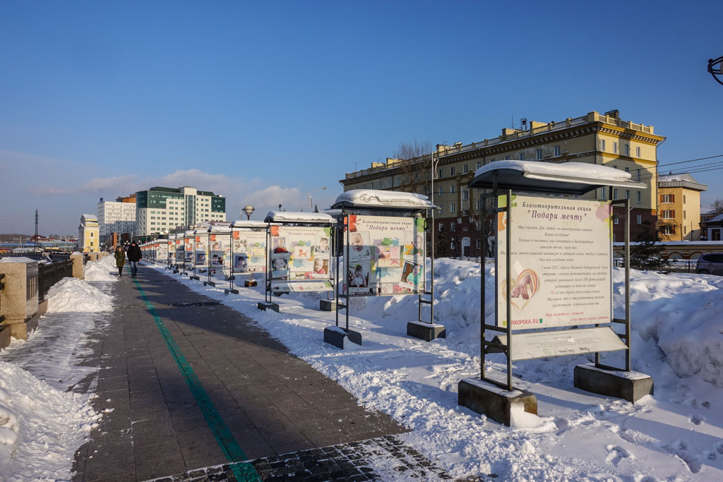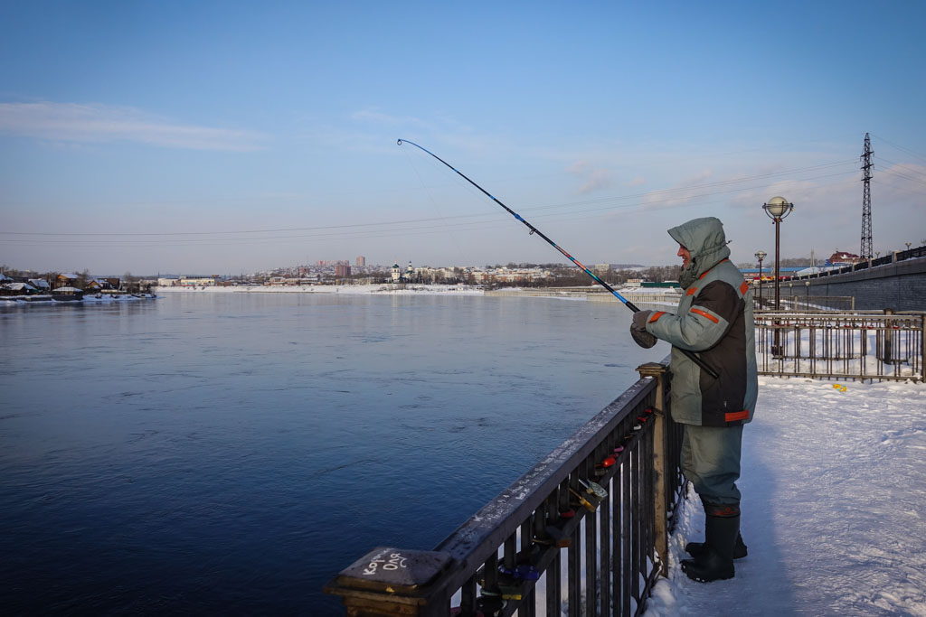 24. Спросите любого жителя Иркутска, что посмотреть в их города, и вас отправят на нижнюю набережную реки Ангары. Набережная действительно приятная, даже зимой. Река, несмотря на сильные морозы, не замёрзла, в ней даже рыбу ловят.