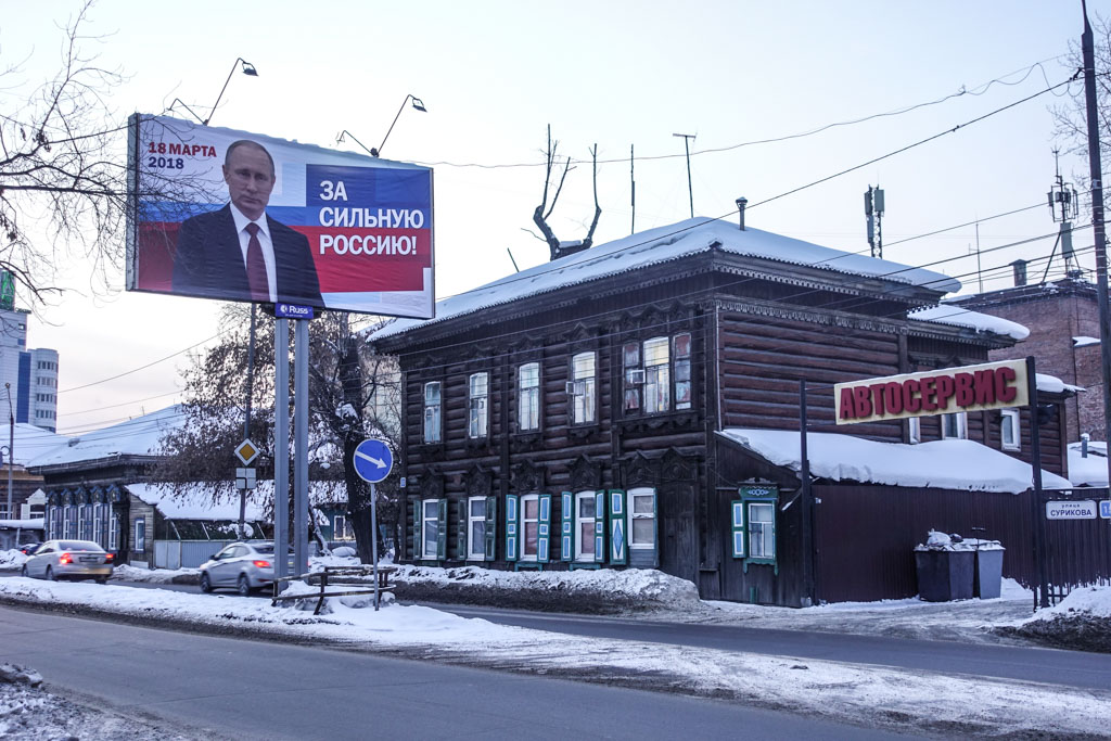 23. Кстати, именно в Иркутске мне повстречался плакат, с агитацией за победителя. Я не претендую на большой охват, но за полторы недели видел много рекламы за явку, несколько плакатов Собчак и Грудинина, а за Жириновского агитировало заднее стекло всех такси. Но вот плакат с Путиным мне попался только один раз.