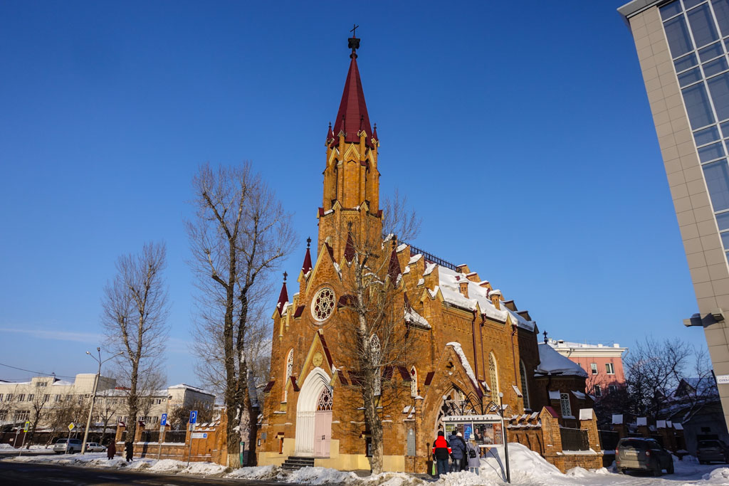 11. В Иркутске много церквей. Это римско-католический Приход Успения Богородицы, красивый костёл, возведённый поселенцами в 1825 году.