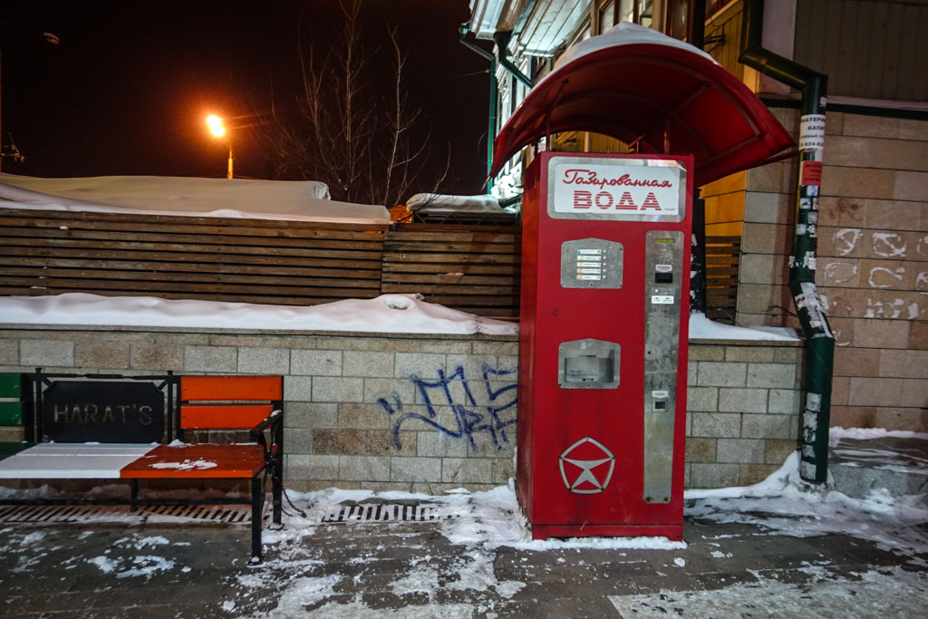 8. А вот ещё один кусочек советской ностальгии - автомат газированной воды. Огромная эмблема Знака Качества наталкивает меня на мысль, что это скорее новодел, чем действительно старый автомат. Но в остальном, кажется, стиль выдержан нормально. Даже стаканов, как и положено, в нём нет.