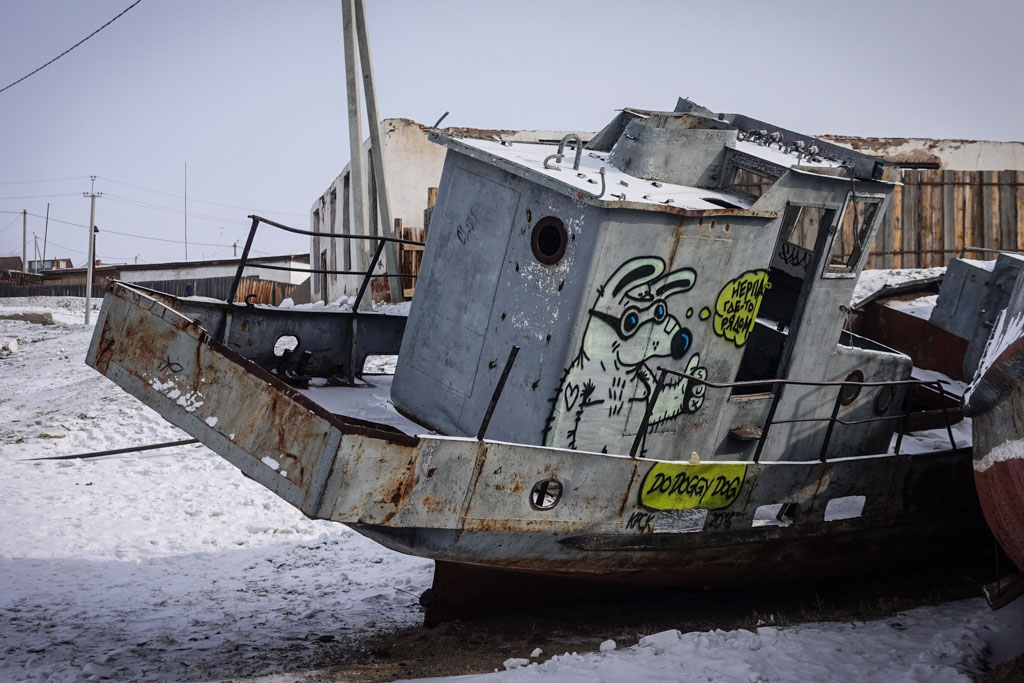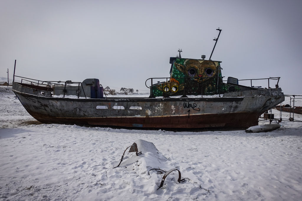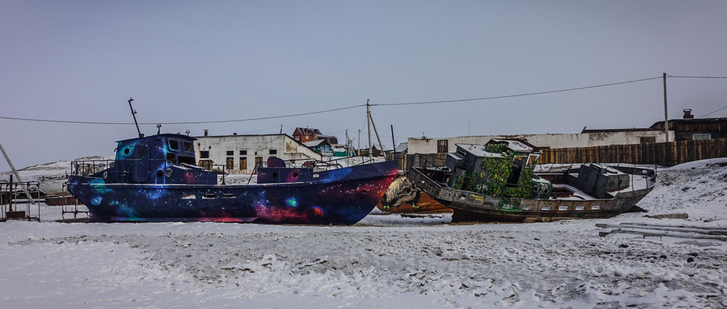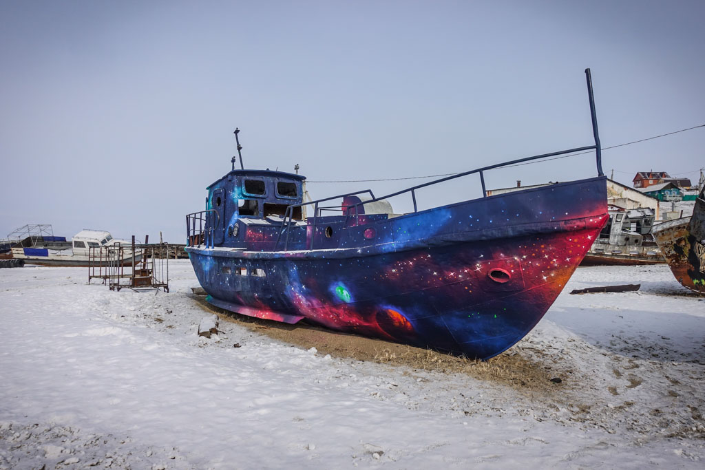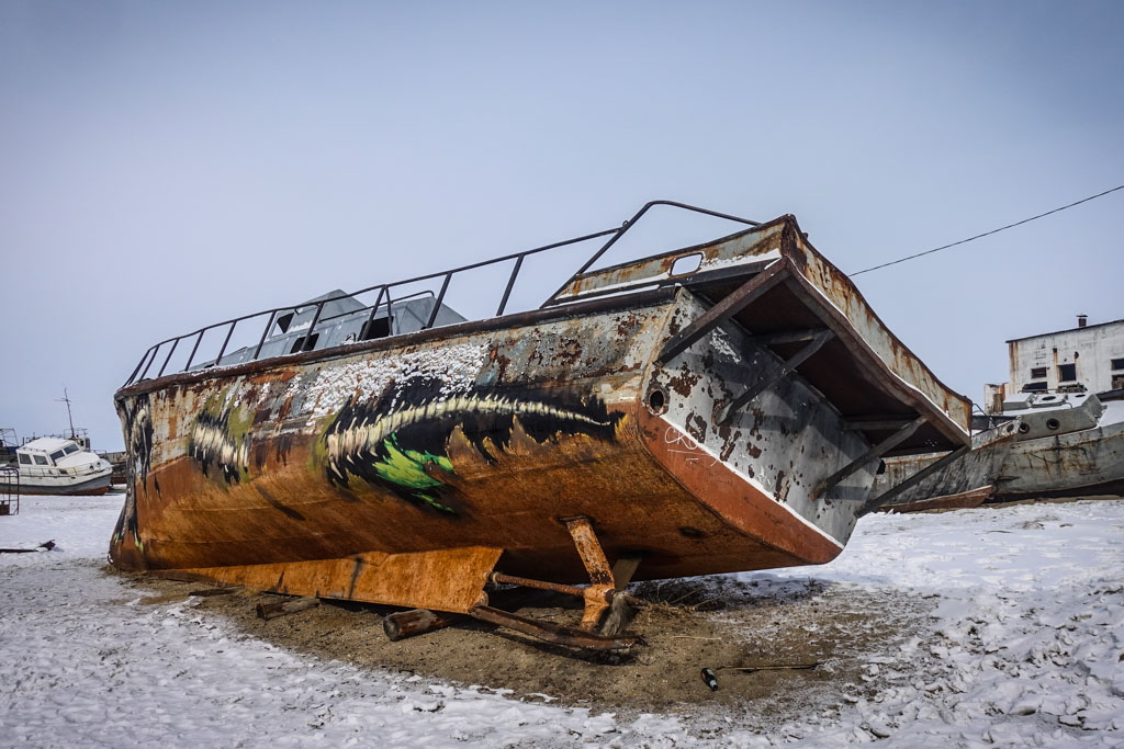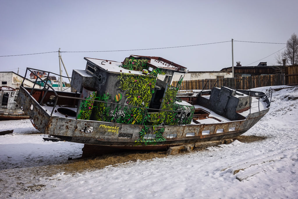 Недавно я побывал в необычном месте. Там, в зимних сибирских льдах покоятся старые ржавые катера. Вернее, покоились, пока не пришли какие-то чудаки-художники, и не вдохнули в эти старые посудины новую жизнь в качестве арт-объектов.