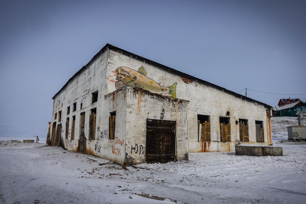 1. Посёлок Хужир на байкальском острове Ольхон основали в 1930х годах. На краю города до сих пор остались ворота градообразующего предприятия, Маломорского Рыбзавода. В XX веке здесь производили рыбные консервы. Завод давно закрылся, и сегодня всё что от него осталось это красная звезда на воротах, и одно плохо сохранившееся приземистое здание с заколоченными окнами. Строгую предупреждающую табличку "низзя" добавили позже. Впрочем, проход на территорию бывшего рыбзавода свободный.