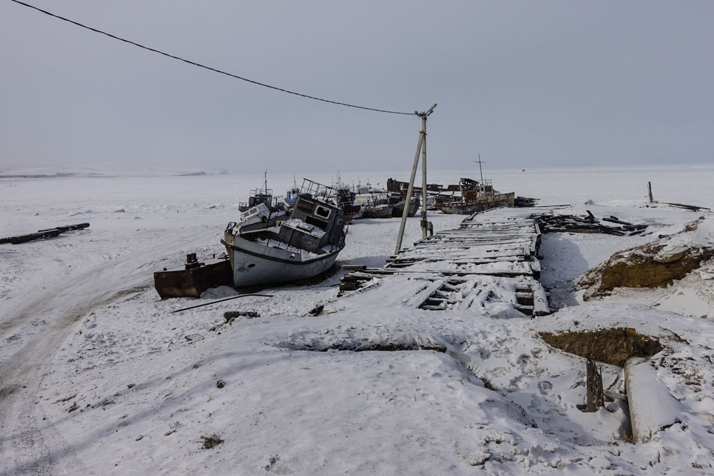 5. Возле причала стоят старые катера. Сначала я подумал, что их здесь оставили "зимовать". Я честно говоря не очень себе представляю, что происходит с байкальскими катерами зимой, когда вся вода замерзают. Нормально ли им во льдах просто стоять всю зиму? Как бы то ни было, подойдя чуть ближе, я сразу понял, что эти "отдыхают" тут уже давно, и ещё надолго.