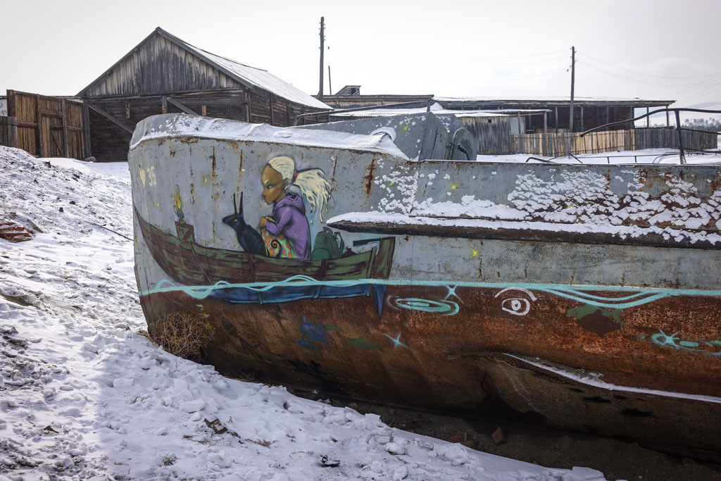 Похоже, жители Хужира народ художественный - то фрески с красноармейцами расстреливающими духовенство в церкви нарисуют, то русалку-Ленина, то скелет кита внутри катера...
