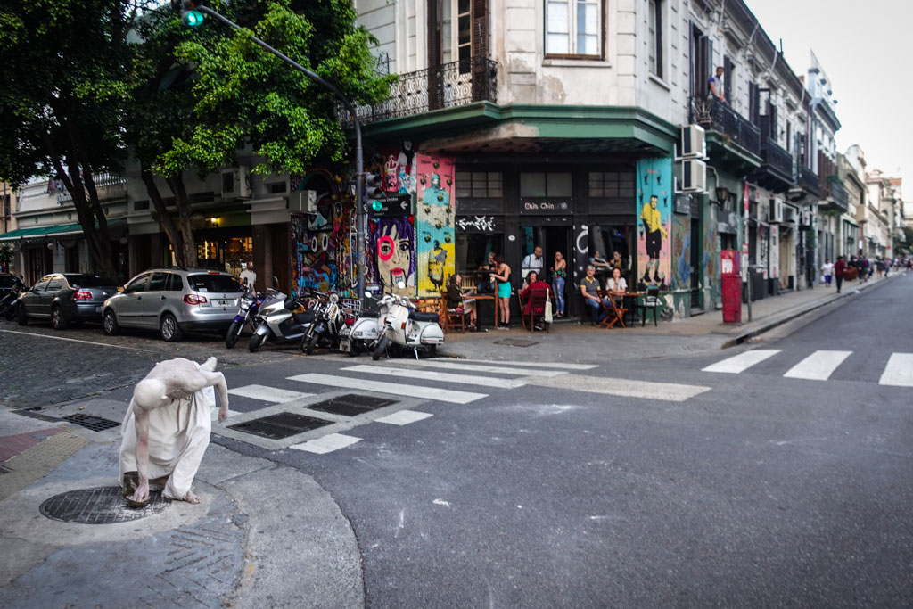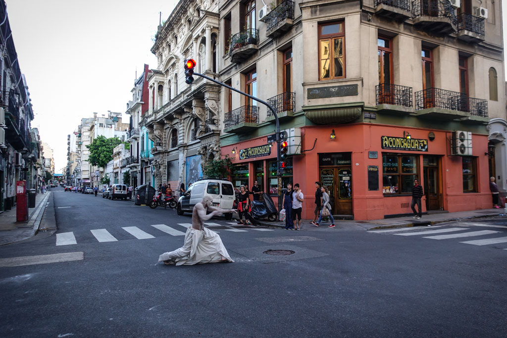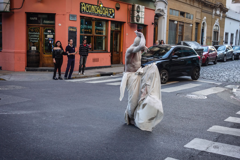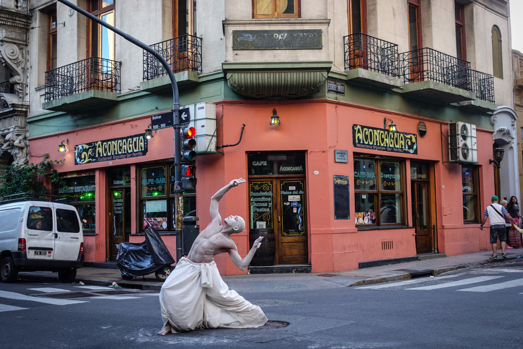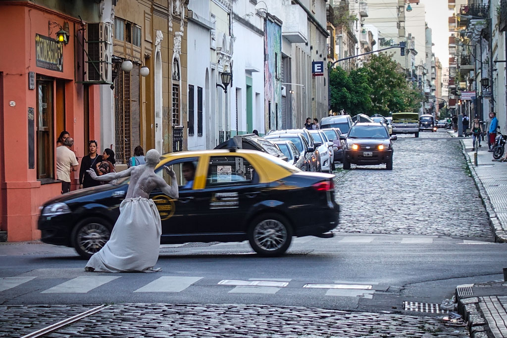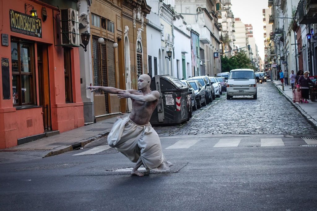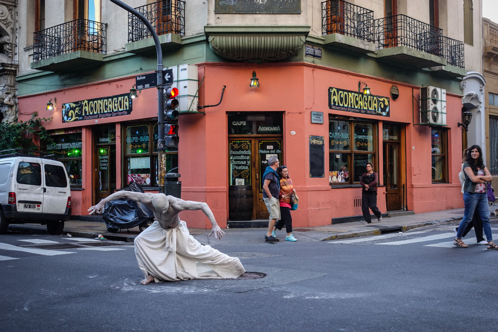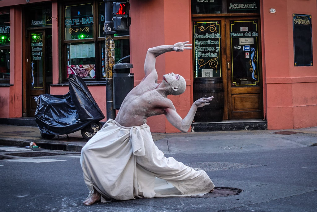 В декабре, по дороге в Антарктиду, мы с Тоней пару дней заехали в Буэнос-Айрес. Там как раз было в разгаре лето. Мы гуляли по одному из старых районов города, Сан-Тельмо, и вдруг на уличном перекрёстке увидели танцора, полностью покрытого белой краской.