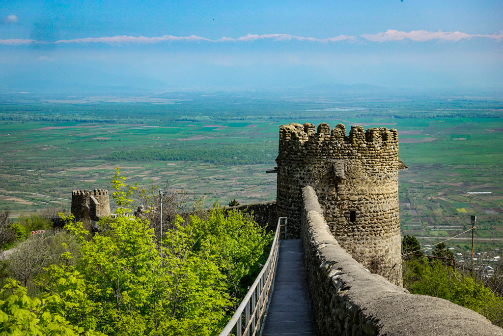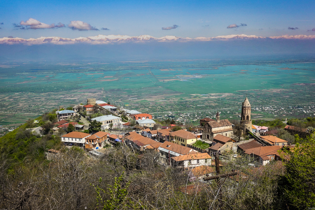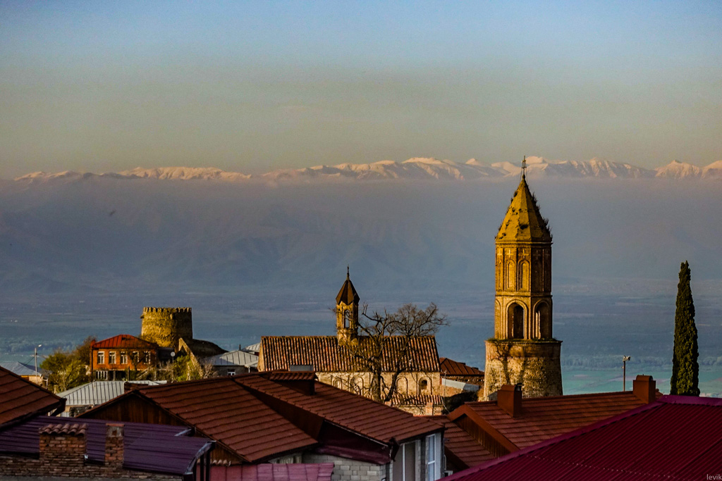30. Вечером, после того как все тургруппы разъехались, солнце садится за соседние холмы. И некоторое время небо над городом, и над Алазанской Долиной, играет оранжево-фиолетовыми красками. За этим здорово наблюдать с одной из многих смотровых точек города (например, стоя на старой стене крепости).