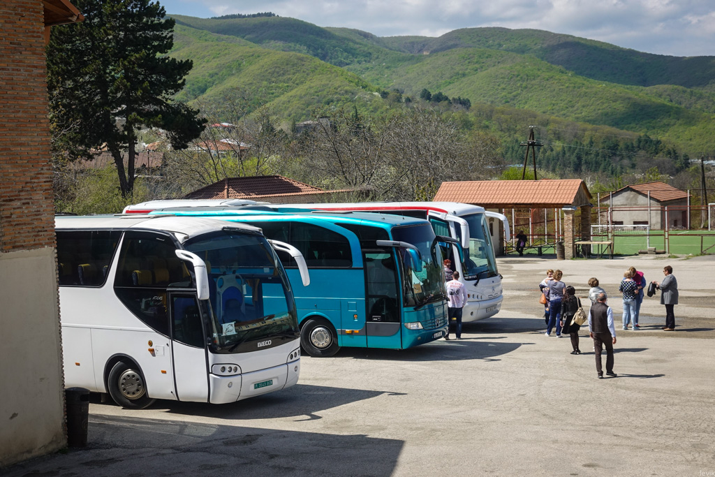 21. Такие группы туристов привозят в Сигнахи на больших автобусах.