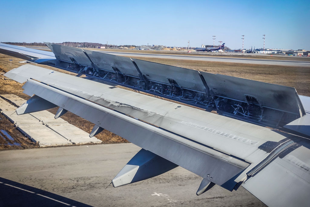 Сам я, при выборе места в самолёте, стараюсь садиться как можно ближе к переду, поэтому довольно редко вижу крылья, даже если сижу из окна. Но иногда приходится сидеть подальше назад, и вот в таких случаях, смотрю иногда на крыло во время взлёта, и тем более - посадки, и прямо немного страшно становится, несмотря на то, что летаю я часто.