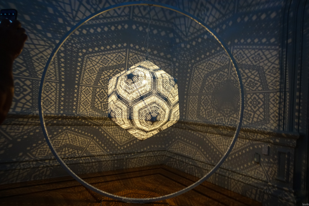 13. Ещё одна знакомая инсталляция - металлический многогранник с вырезанными узорами, изнутри которого сияет свет.