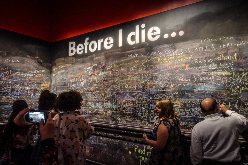 21. Уголок интерактива - посетителям предлагается написать мелом что-то что они хотели бы успеть сделать перед смертью.