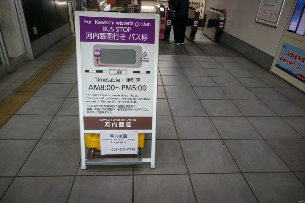 4. Прибыл туда в семь утра. В сезон цветения отсюда в сад Кавати Фудзи ходит бесплатный шаттл, но он начинает ходить только в 8. Неохота час тут ошиваться на станции, да и хочется попасть в сад одним из первых. Что делать?