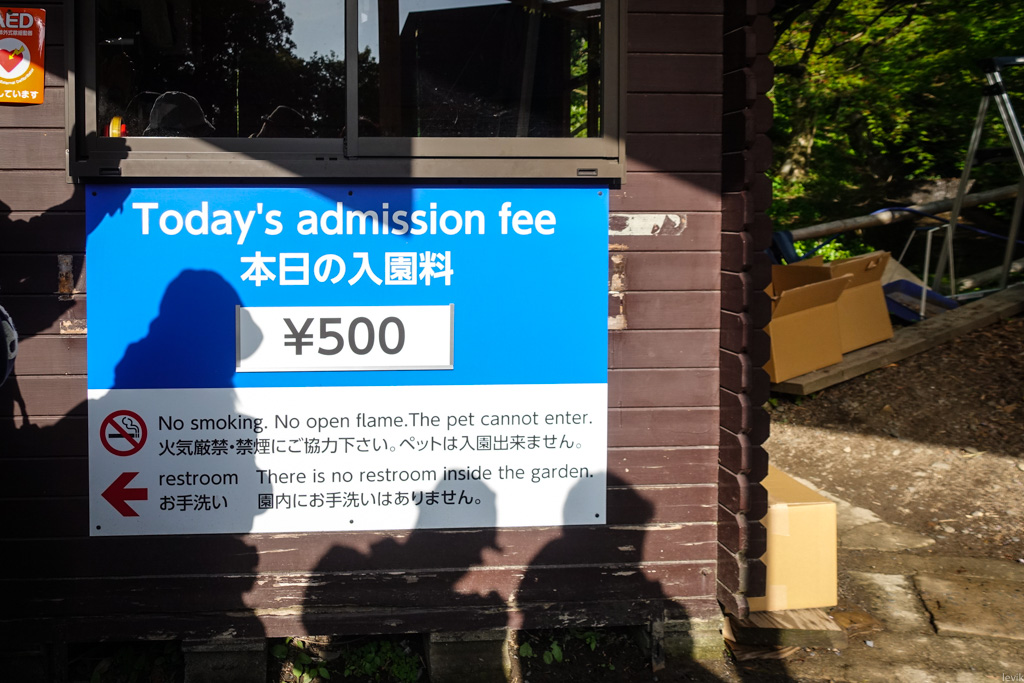 Дело в том (и я знал он этом заранее), что цена за вход в сад варьируется в зависимости от стадии цветения. Она может быть 500, 1000 или 1500 иен - чем больше цветов и красок, тем дороже. Так как предсказать цветение трудно, все билеты продаются по 500, а потом в пиковые периоды цветов на входе собирают дополнительную плату.