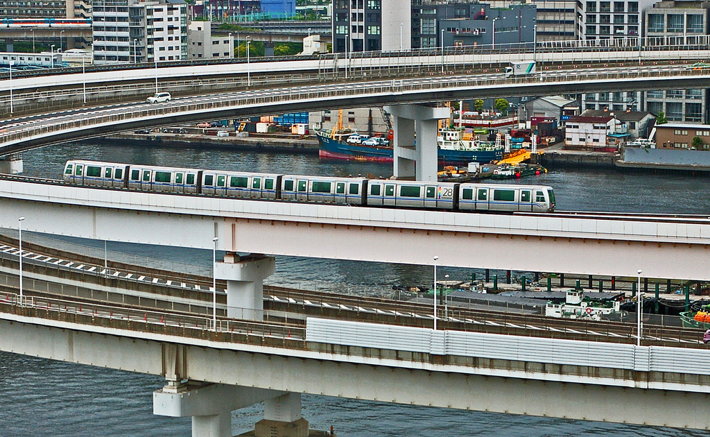В Токио есть огромное количество железнодорожных линий, которые мы с вами назвали бы словом "Метро". Однако в отличии от привычных нам систем, в японской столице всё гораздо сложнее - тут несколько независимых систем, и ещё парочка совсем отдельных линий. Одна из них - Юрикамомэ - отличный способ посмотреть на Токио, так как идёт по не слишком быстро и по поверхности, соединяя деловой центр с развлекательным районом Одайба (подробнее об этом и других районах Токио я уже рассказывал - в том же посте есть карта, показывающая насколько сложна и запутана система столичного рельсового транспорта).
