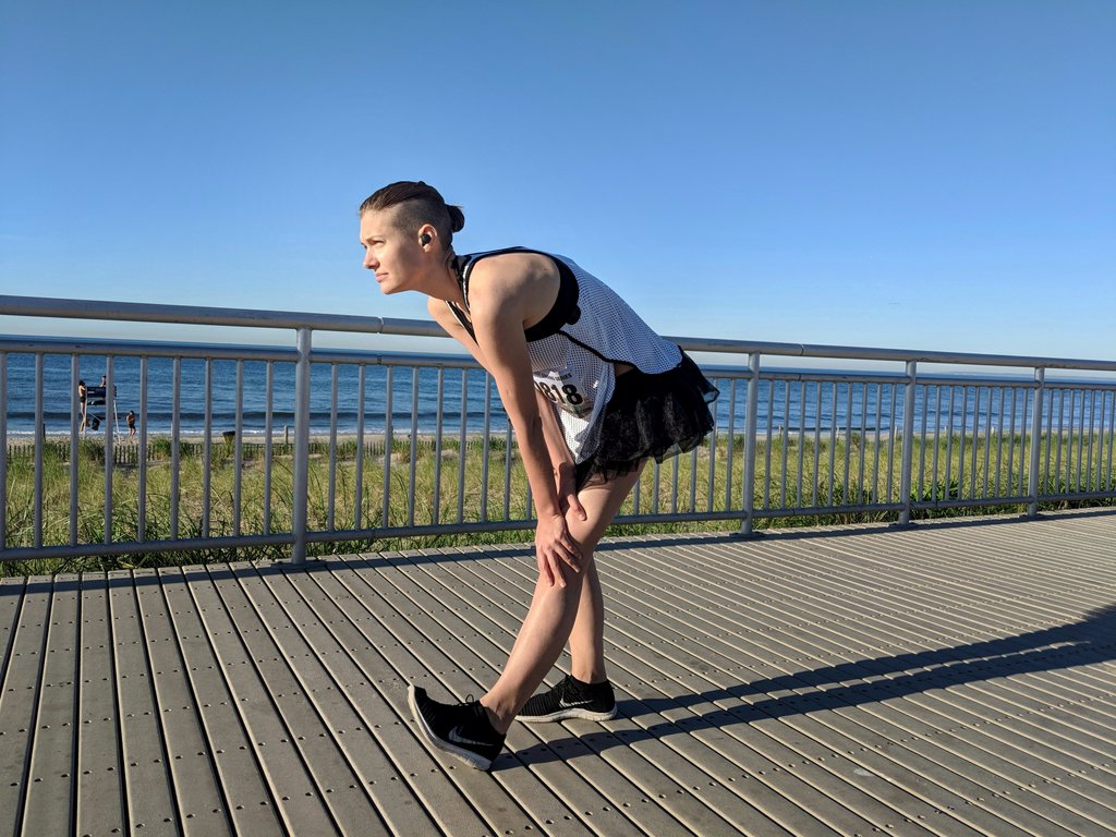 Забег состоялся в районе Рокавей, где-то в 20 минутах езды от Шипсхед Бэя, где живу я. Мы втроём приехали туда за час, чтобы зарегистрироваться, получить номерки и размяться. Вы только посмотрите на наши довольные лица!