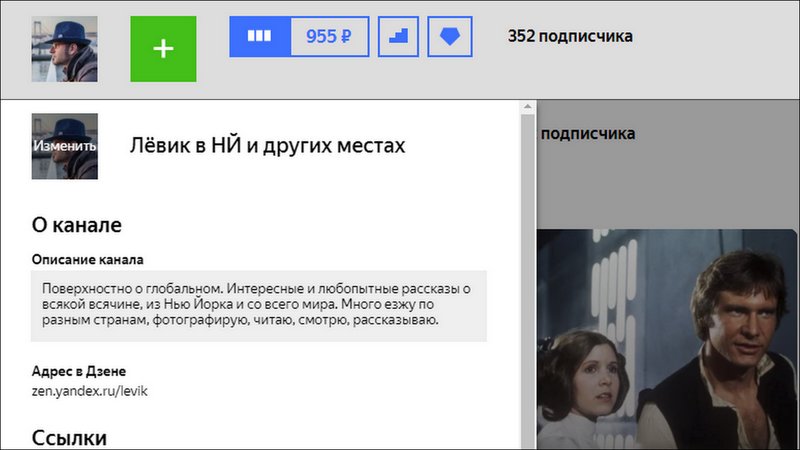 В левом верхнем углу интерфейса Дзена есть иконка с вашим аватаром.Если нажать на неё, то выезжает ящичек с разными настроками. Можно быстро посмотреть на разную информацию вашего канала, и тут же закрыть. Только, оказывается что закрывать её надо особым способом. Просто кликнуть снова на аватарку не выйдет, потому что она за долю секунды превратилась в кнопку по смене аватаров.