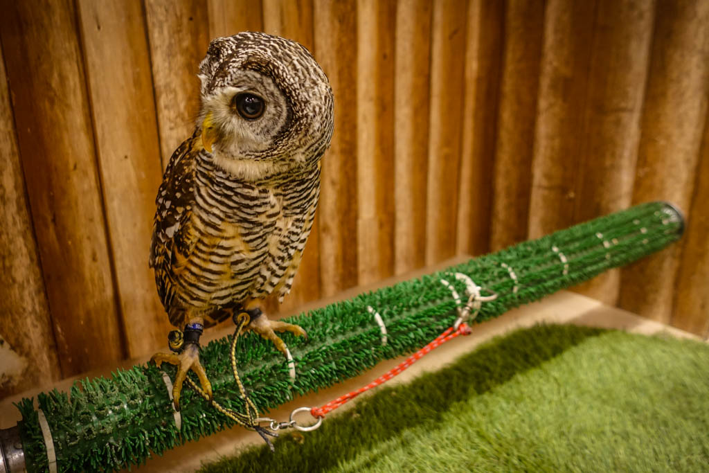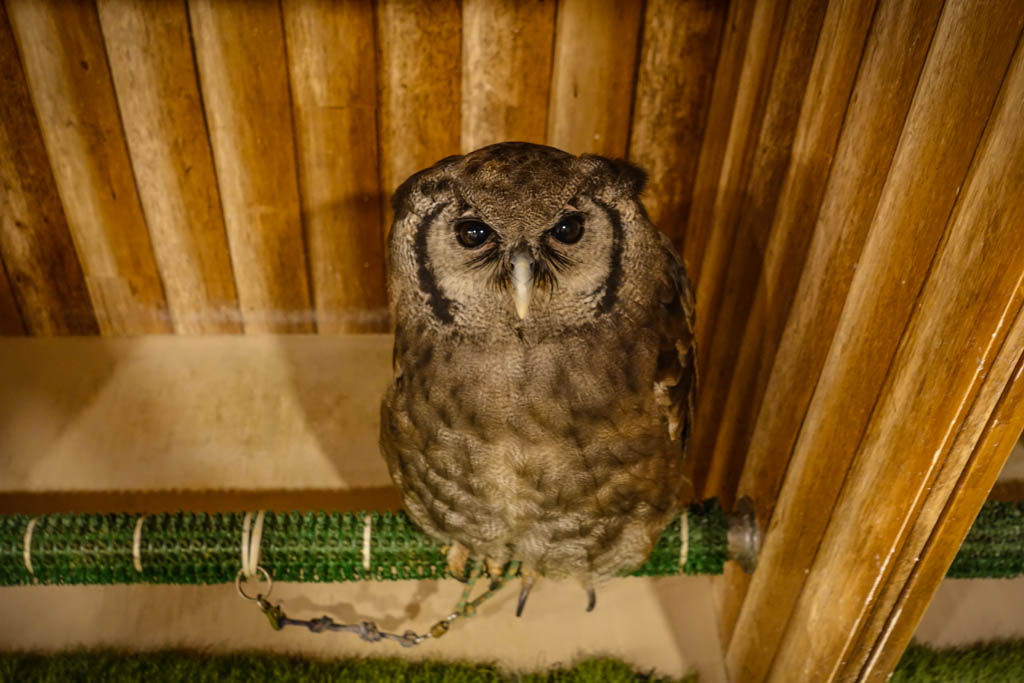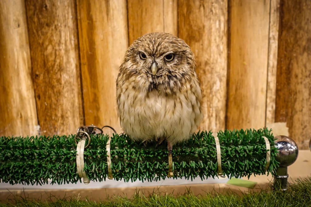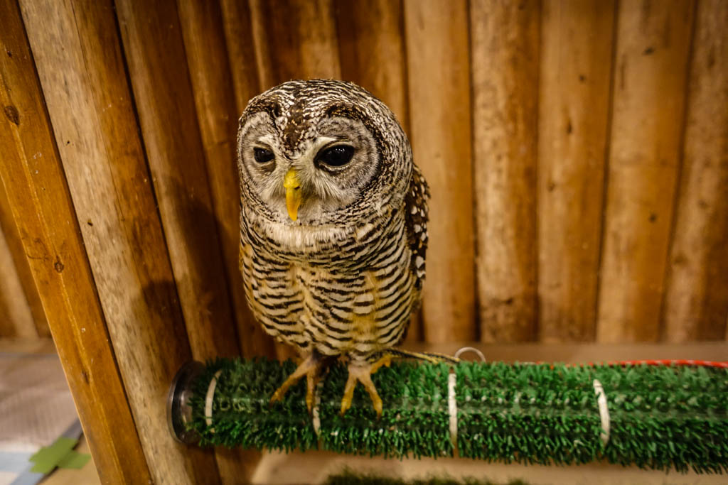 7. Нам объяснили, что совы с такими карточками "отдыхают", и трогать их нельзя. Некоторые из них действительно сидели с закрытыми глазами, другие выглядели довольно бодрыми.