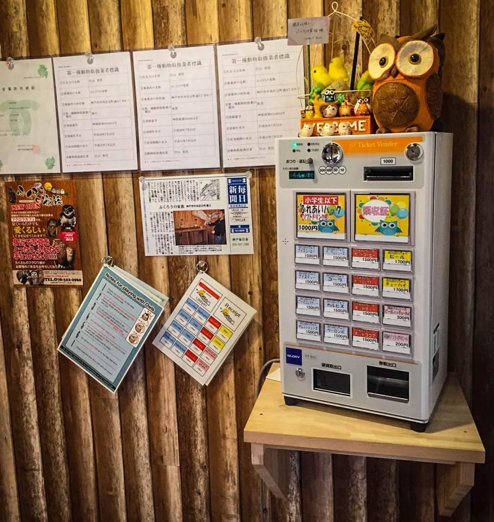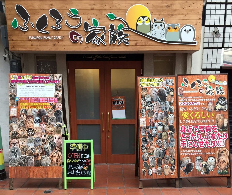Читал где-то, что популярность этих необычных хищных птиц сильно возросла с выходом в свет серии книг и фильмов о Гарри Поттере (вспомним, что у главного героя, как и у всех уважающих себя волшебников, была ручная сова.) Не знаю, повлияло ли это на распространённость совиных кафе в Японии, но теперь они есть практически во всех городах. Мы с друзьями побывали в одном из них (в городе Кобе). Давайте посмотрим, как это выглядит.