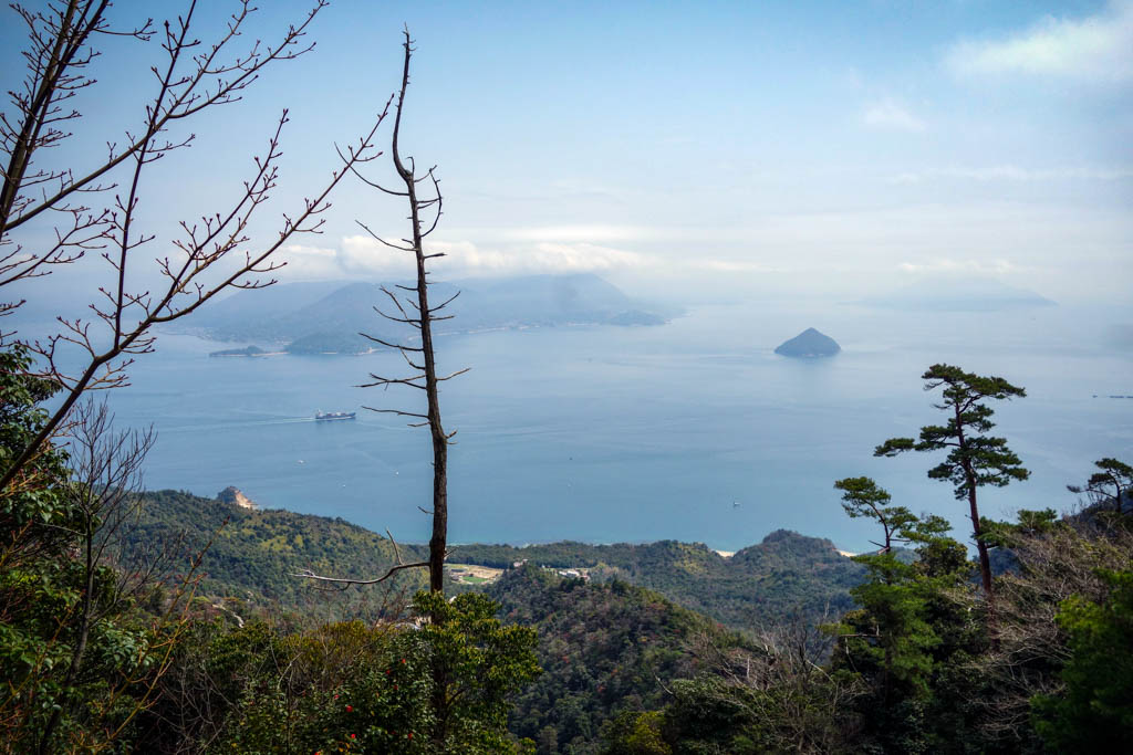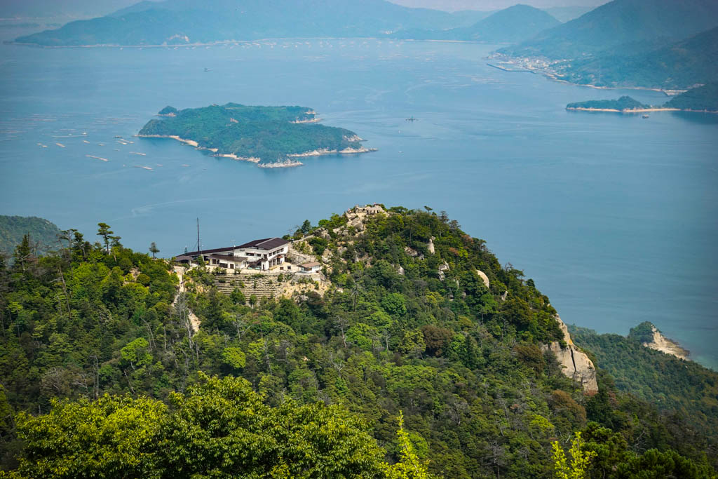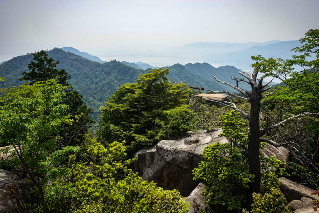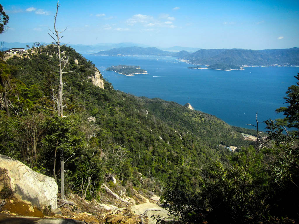 39. Сверху можно посмотреть на соседние вершины острова, который полностью покрыт зеленью. Отсюда не видно цивилизованной части, кажется, что Миядзима абсолютно нетронут рукой человека. К сожалению, плывущих ворот сверху тоже не видно.