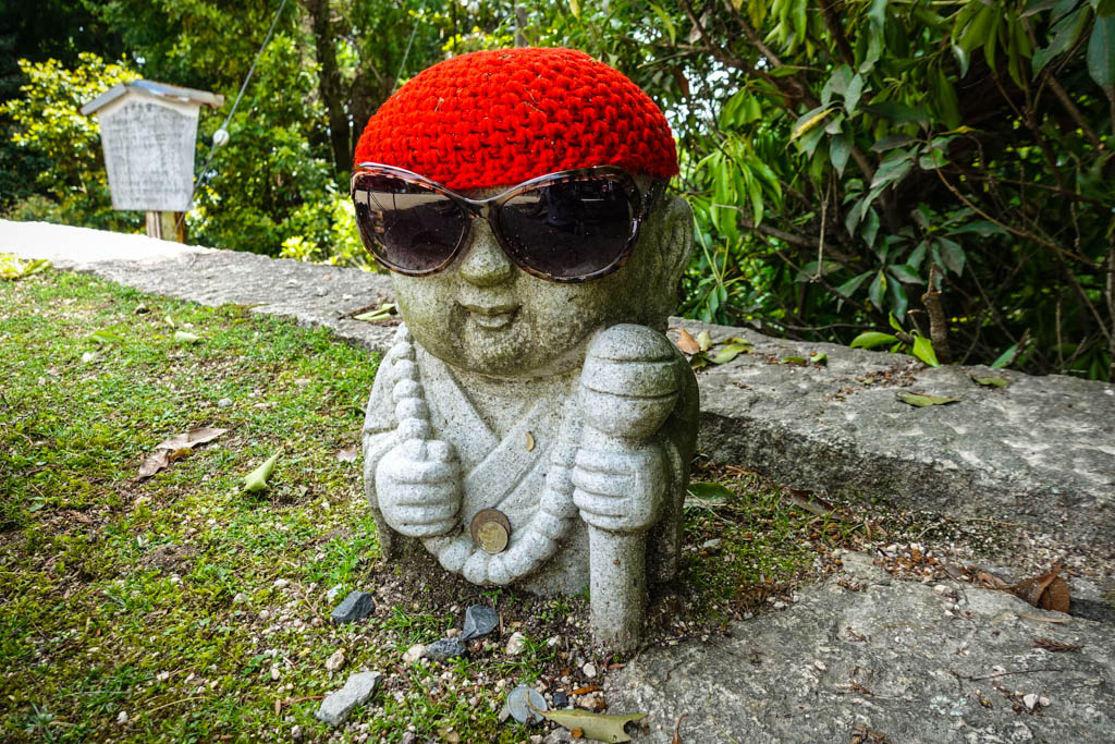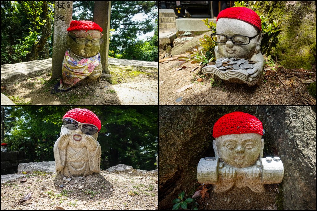 33. А ещё, если смотреть под ноги, можно заметить вот таких каменных гномиков в вязанных красных шапочках и очках. Кажется, это Дзидзо, про которых я рассказывал вам в посте про тысячелетнее священное кладбище Коя-Сан.