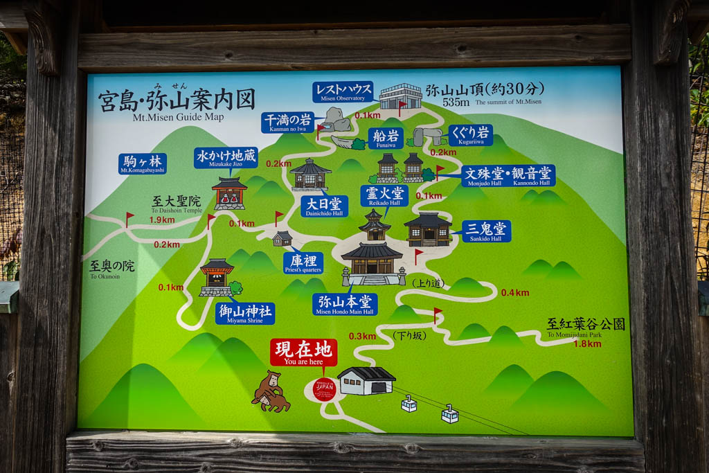 Поставив главные галочки (гора, святилище, ворота), можно пойти перекусить что-нибудь в городке, или ещё погулять по острову, а можно уже направляться назад к парому. В конце концов, вы в Японии, и тут очень много всего интересного!