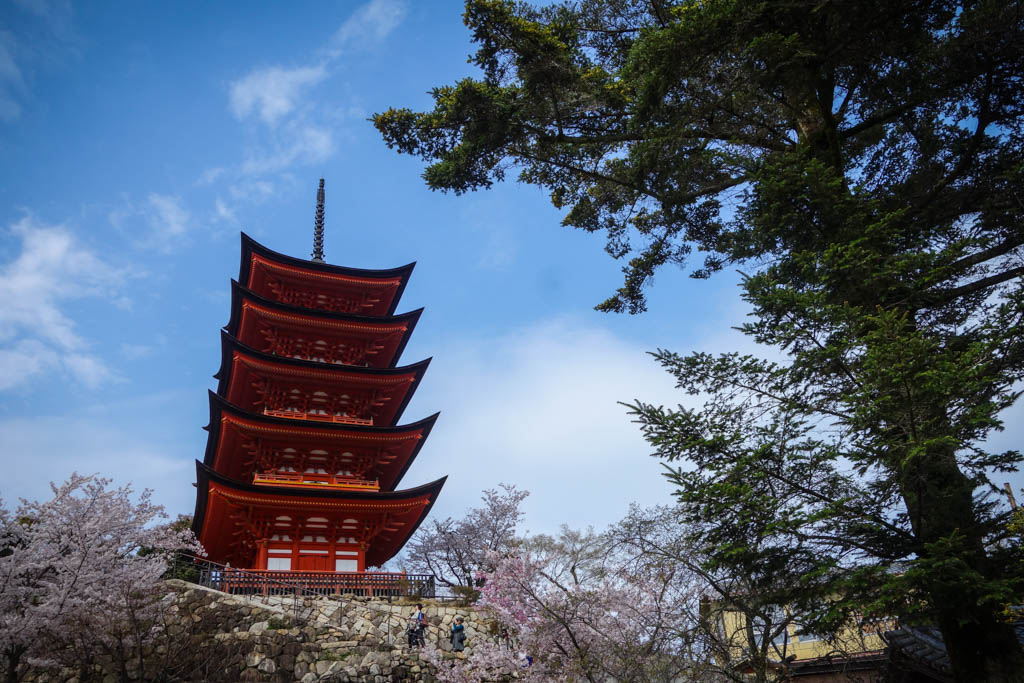 12. Так как место всё-таки религиозной направленности, тут много храмовых зданий. Есть очень красивая пятиярусная пагода. В сезон цветения сакуры её оранжевый цвет отлично гармонирует с окружающим цветением.