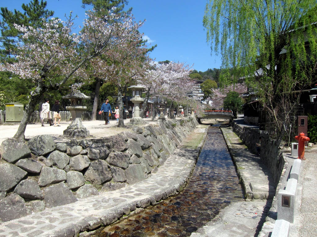 10. Дорога от парома к святилищу лежит по туристической улице с множеством сувенирных лавок, ресторанчиков, и прочих туристических заведений. При желании можно всё это обойти вдоль берега.