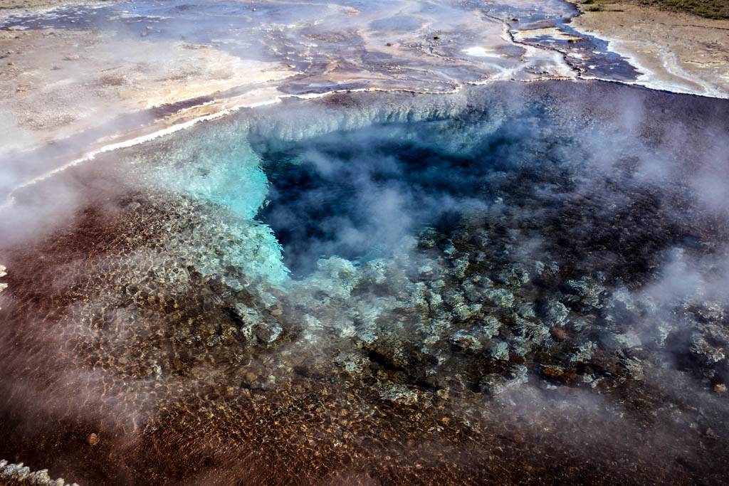 5. Правда, нынче Большой Гейзер притих, и теперь редко извергается. Зато в нескольких десятках метрах от него есть гораздо более активный собрат - Строккюр, который стабильно выплёвывает высоченный ствол горячей воды каждые несколько минут. В промежутках между извержениями он выглядит как большая дымящаяся лужа...
