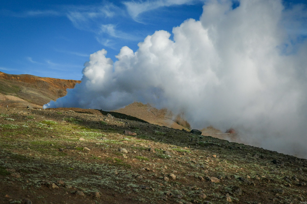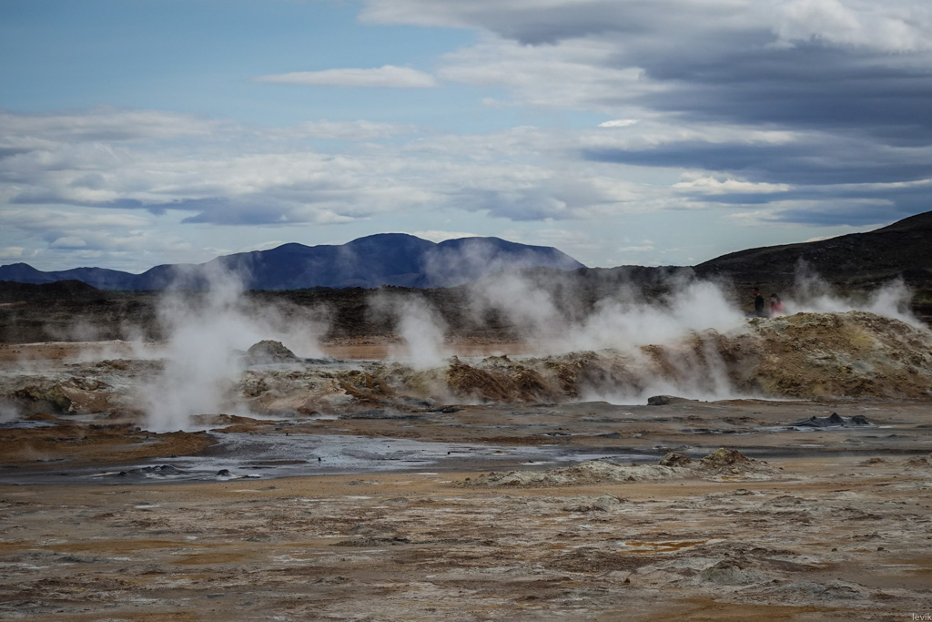 6. Исландия - молодой остров, порождённый активной вулканической деятельностью. Он находится на стыке тектонических плит, и накал страстей из мантии земли часто пробивается здесь наружу в виде извержений, и прочих проявлений. Все помнят вулкан, который в 2010 году перекрыл небо над Европой! (Я тогда чуть не отменил поездку в Португалию!) А вот например, на северо-востоке страны вокруг озера Миватн, есть очень активные вулканические зоны, где куча скважин, из которых пробиваются подземные газы.