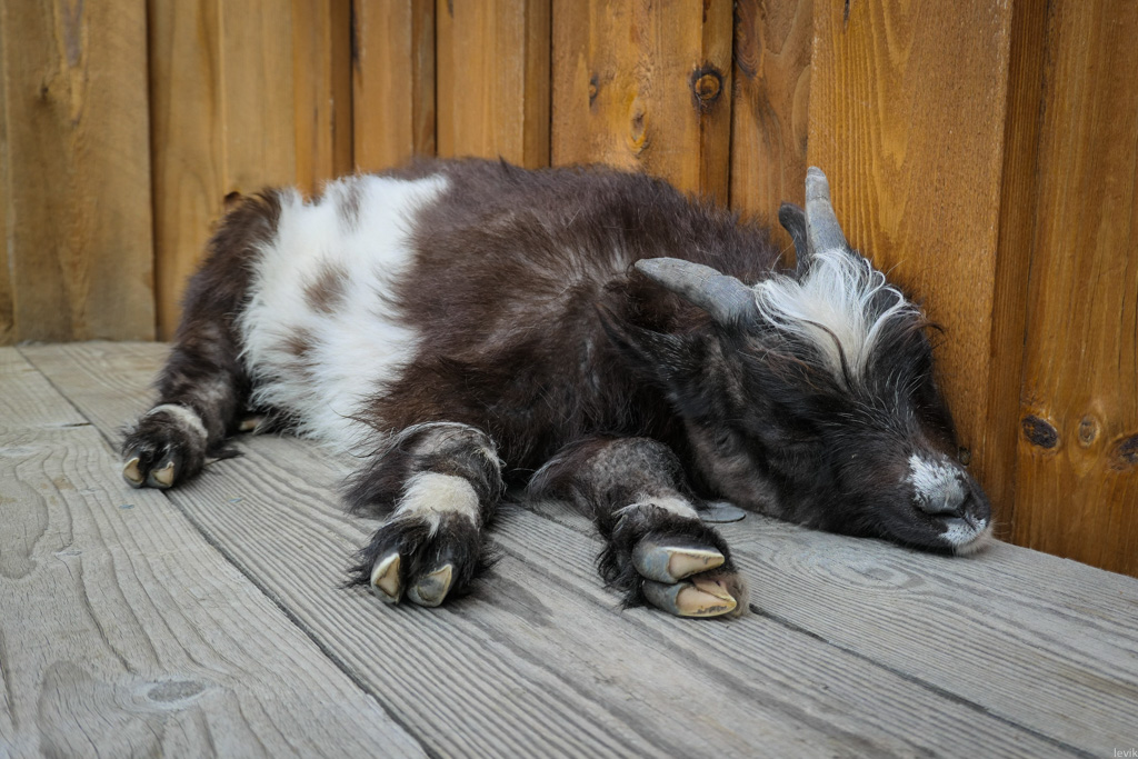 24. И пожилую чёрно-белую козу, которую хозяева одного из кемпингов держали вместо собаки: