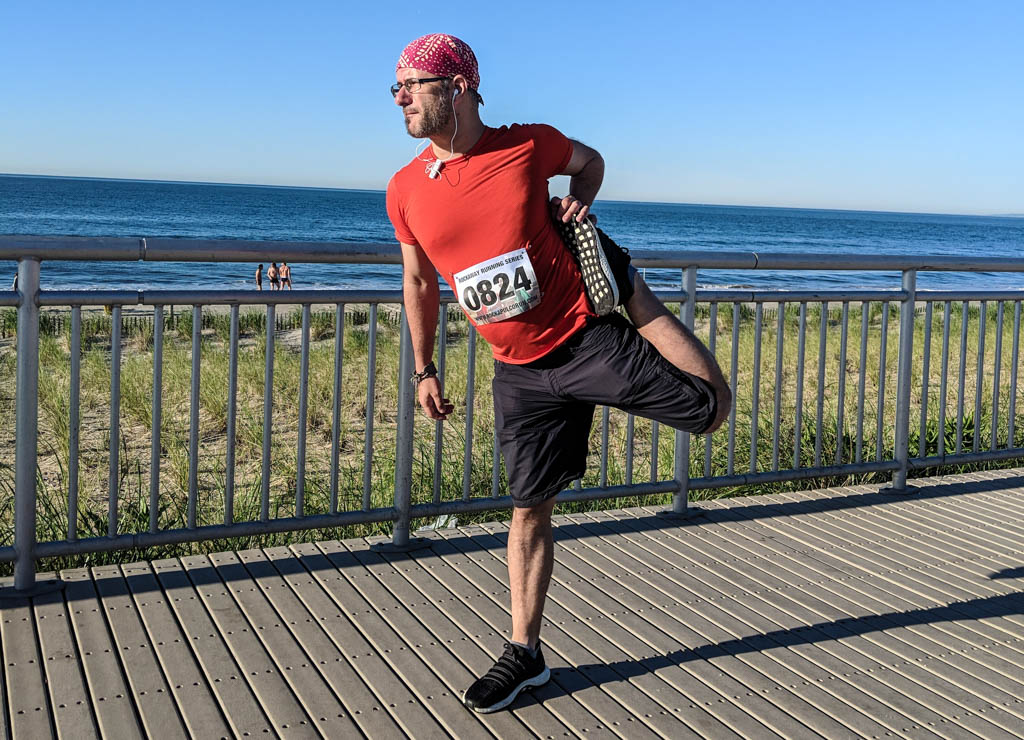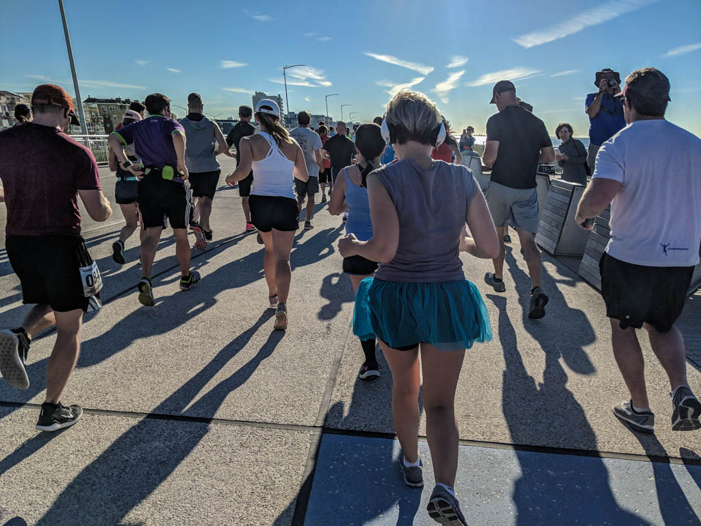 Бежать нам предстояло по вот такому променаду, для этой цели организаторы отмерили участок чуть больше, чем 3.25 мили, и предложили нам добежать туда-обратно два раза, набирая таким образом нужные 13.11. При этом променад даже не стали перекрывать - забег начинался в 7:30 утра, очевидно ответственные люди посчитали, что ни один нормальный человек в такую рань туда всё равно не придёт.