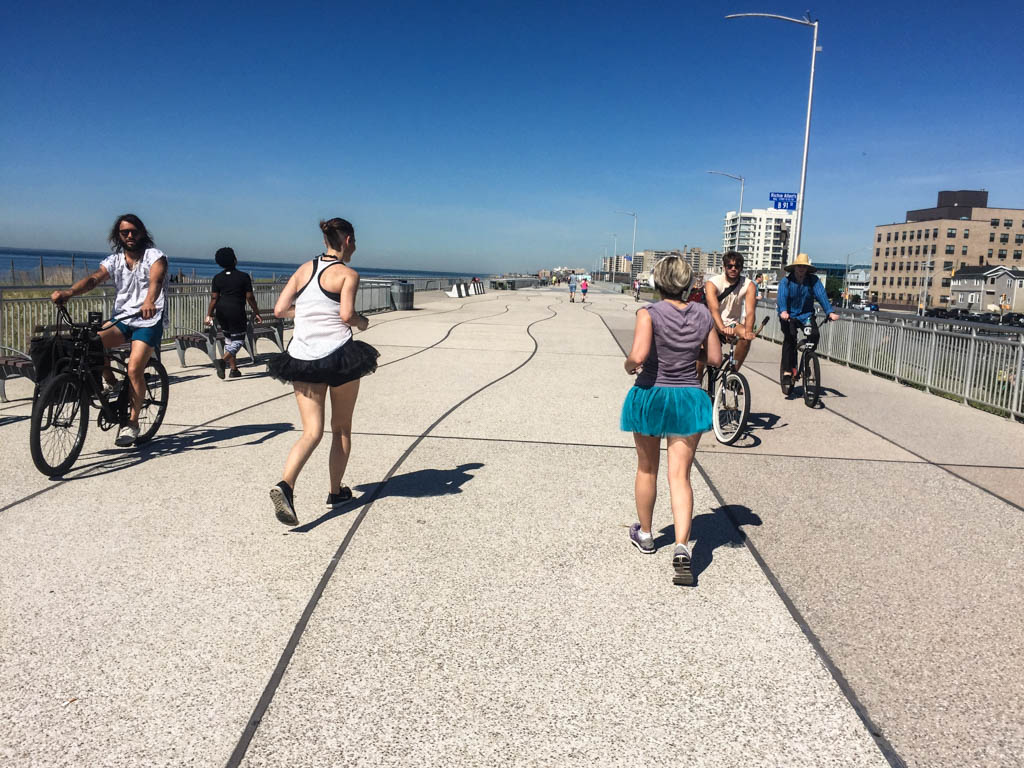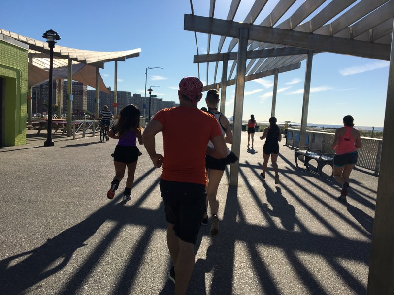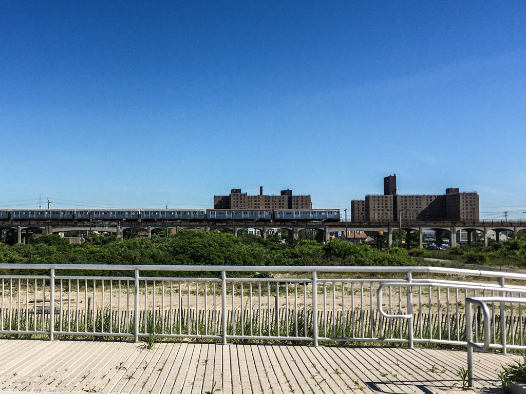 На какой-то части пути вдоль променада идёт надземная линия метро. Поезда здесь ходят нечасто, но когда они ходили, было приятно бежать как будто наперегонки с общественным транспортом (несмотря на все проблемы нью-йоркского метро, я конечно же не смог его обогнать).