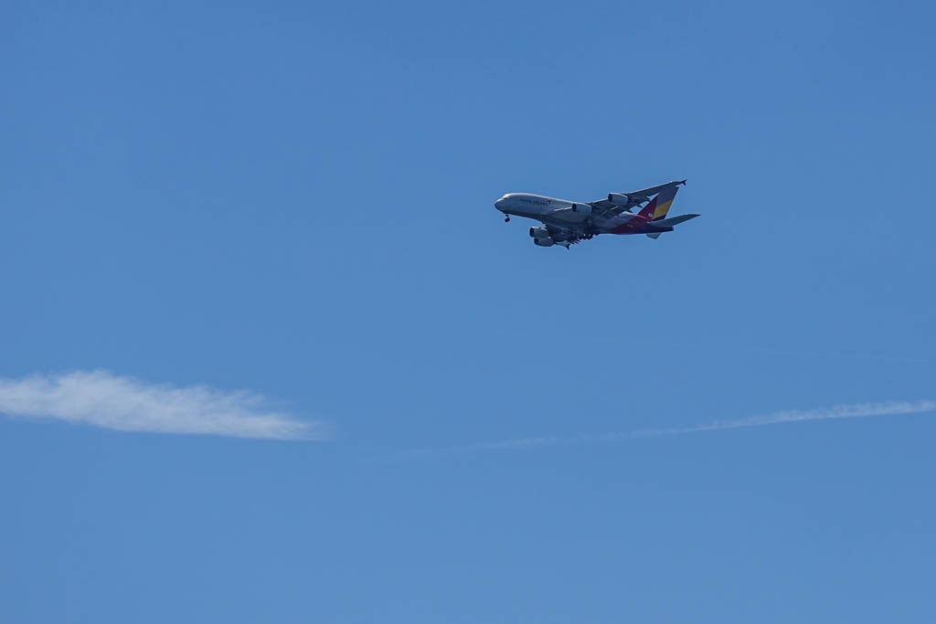 Прямо рядом с Рокавеем находится международный аэропорт JFK, и всю дорогу над нами заходили на посадку огромные лайнеры разных мировых авиалиний. Чтоб отвлечь себя от мыслей об усталости, я придумал игру - смотреть, смогу ли я узнать модель и авиалинию каждого из садящихся самолётов. Например, здесь у нас А380 - это понятно, потому что у него четыре мотора, и отсутствует характерный "горб" 747 Боинга (оба эти самолёта двухэтажные). А вот кто знает, что за авиалиния? (Я узнал её только потому что как-то ими летал.)