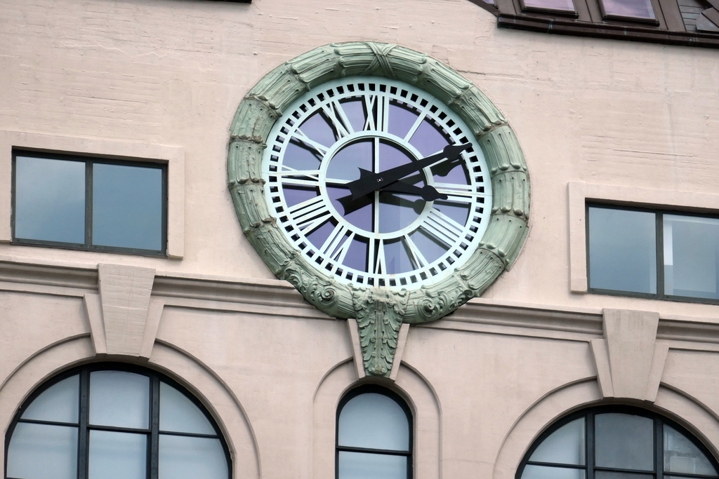 2. Вы наверное заметили, что верхние три этажа этого здания образуют башню, которая увенчана огромными часами. Четыре огромных стеклянных циферблата украшают каждую из стен башни. Каждый их них почти 5 метров в диаметре! А по кромке часов идёт лепнина с классическими мотивами.