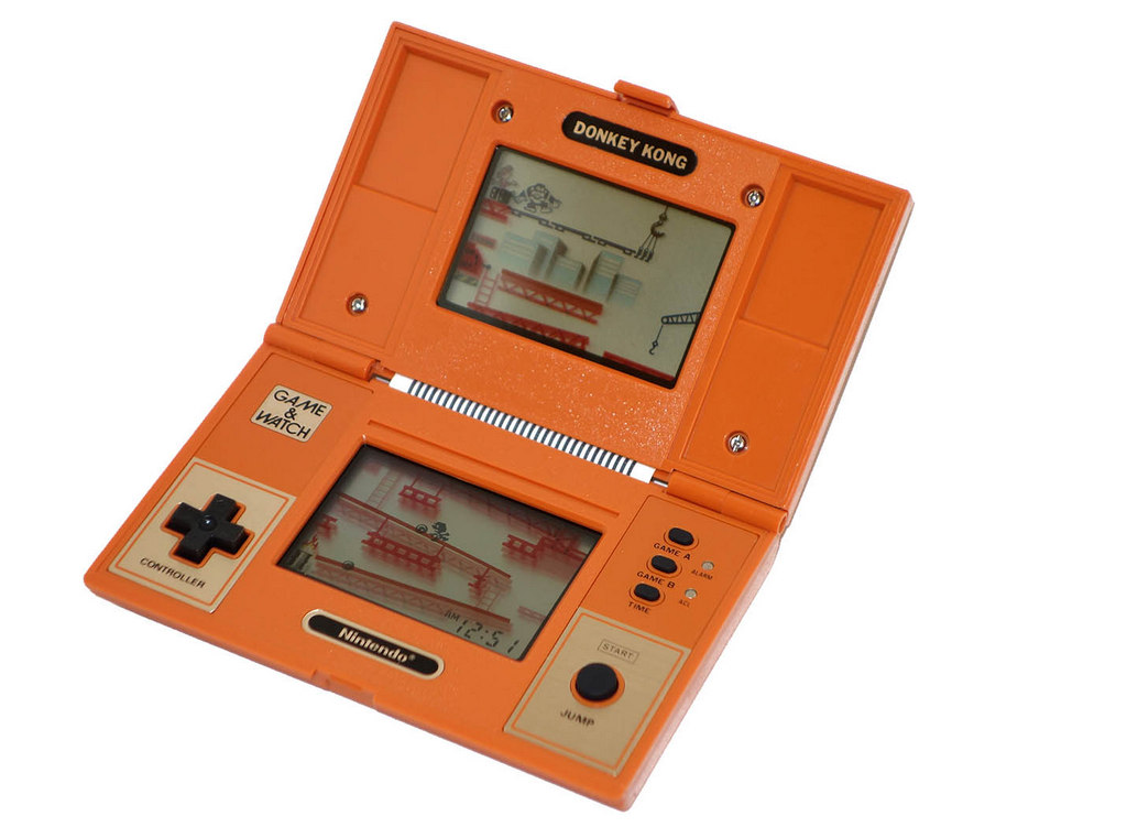 Нинтендо же не остановилось на достигнутом, и продолжало совершенствовать технологии. В 1982 году вышла игра Donkey Kong с одноимённой гориллой. (О том, как годом раньше коллега Гумпэй Ёкой, Сигэру Миямото, придумал этого персонажа, я уже рассказывал.) Интересная фишка в карманной версии игры была в том, что она использовала не один, а два экрана. Почему бы и нет, если технология продаётся за копейки?