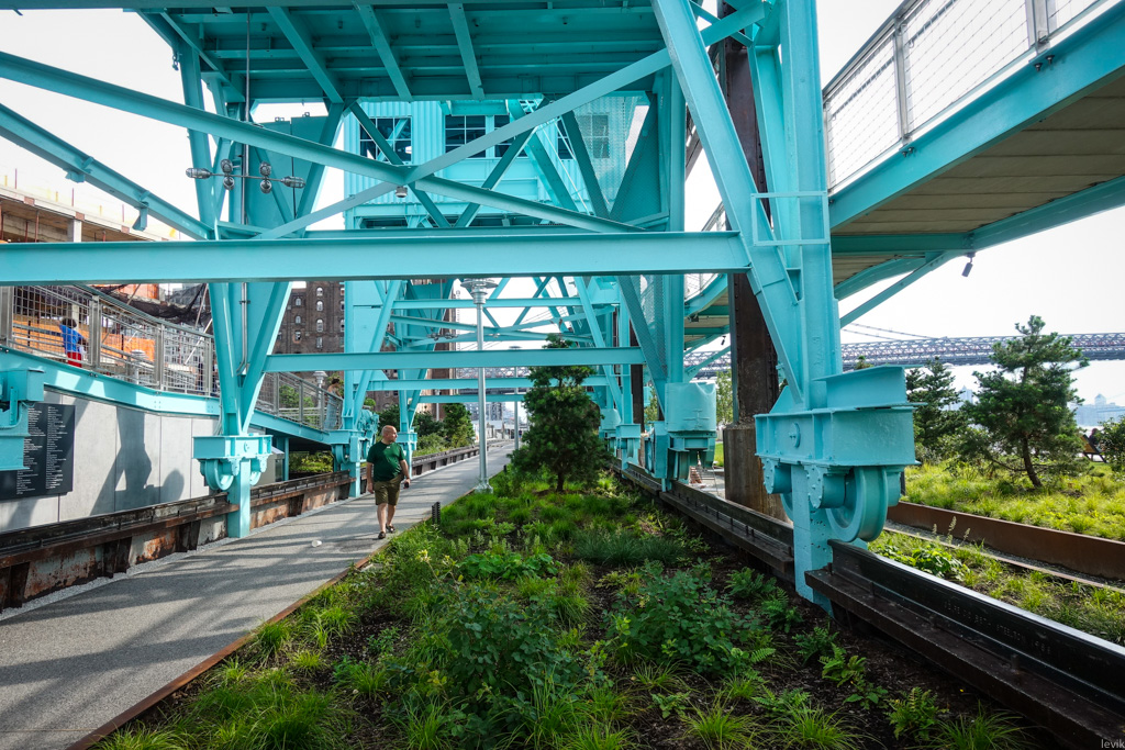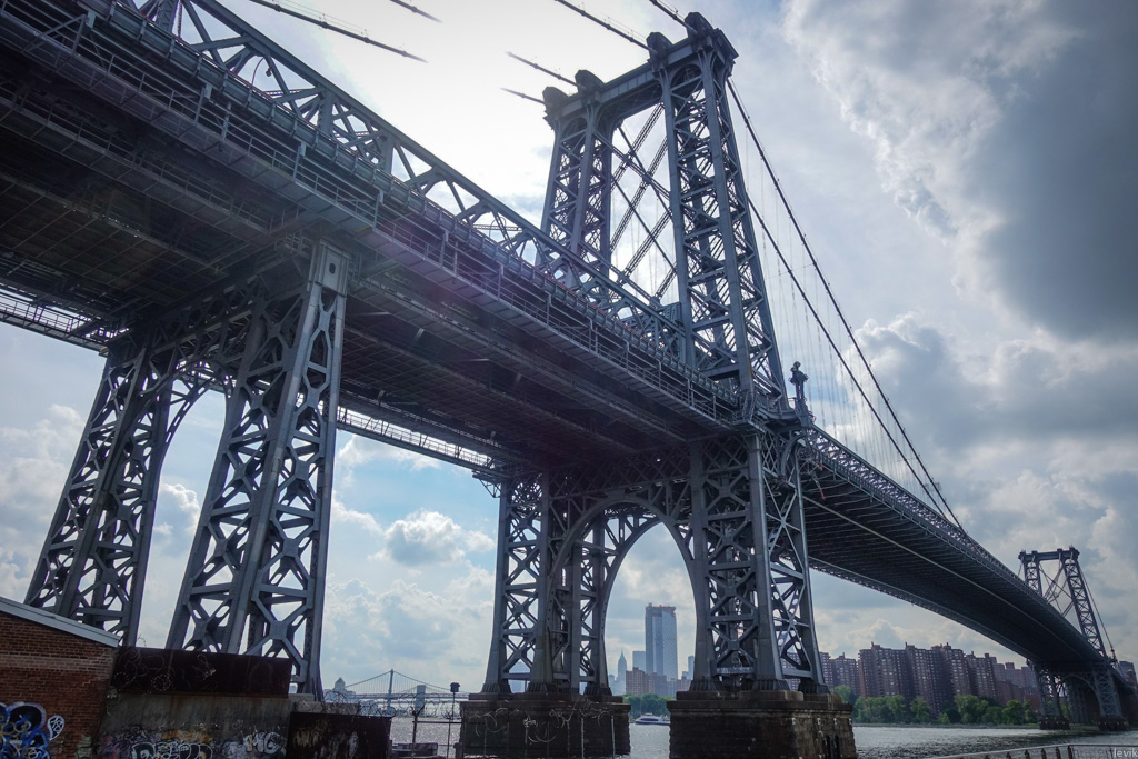6. Парк начинается прямо у подножия Вильямсбургжского Моста (Williamsburg Bridge). Отсюда эта махина стальных балок выглядит очень внушительно. Кстати, удивительное дело: между опор моста на дальнем берегу реки, имитируя "невозможный кадр", красуется небоскрёб, который портит все мои любимые виды! Вынужден признать, что с этого ракурса он смотрится неплохо.