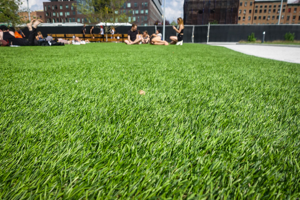 14. Правда, к сожалению, оказалось, что трава здесь не натуральная, а мерзкий пластмассовый Astroturf. Вычитаем за это пять баллов из общей отметки парка.