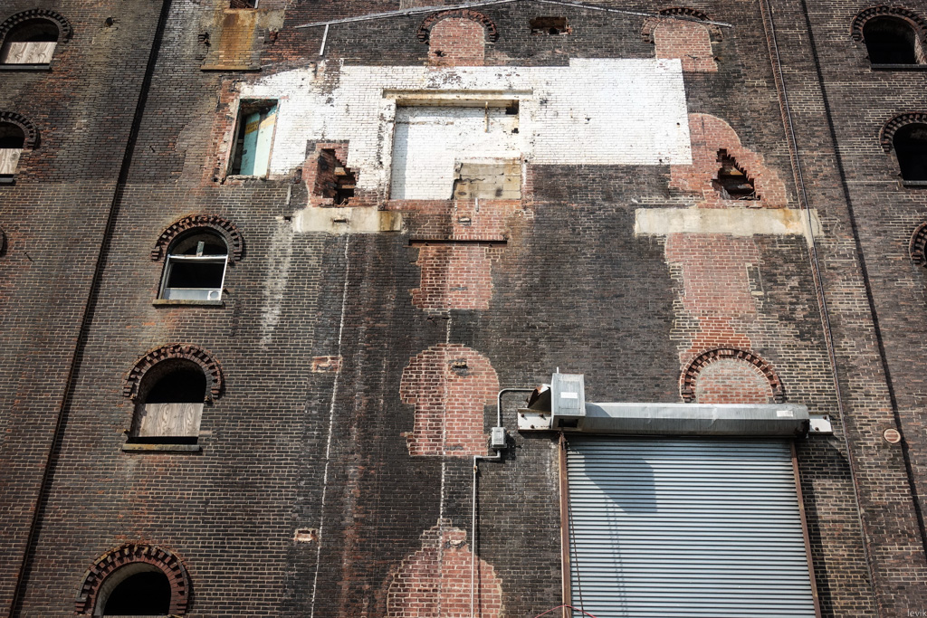 28. Пока что особого прогресса реставрационных работ не видно. Кирпичные стены показывают явные шрамы прошлых работ, когда к заводу пристраивали корпуса, закладывая окна.