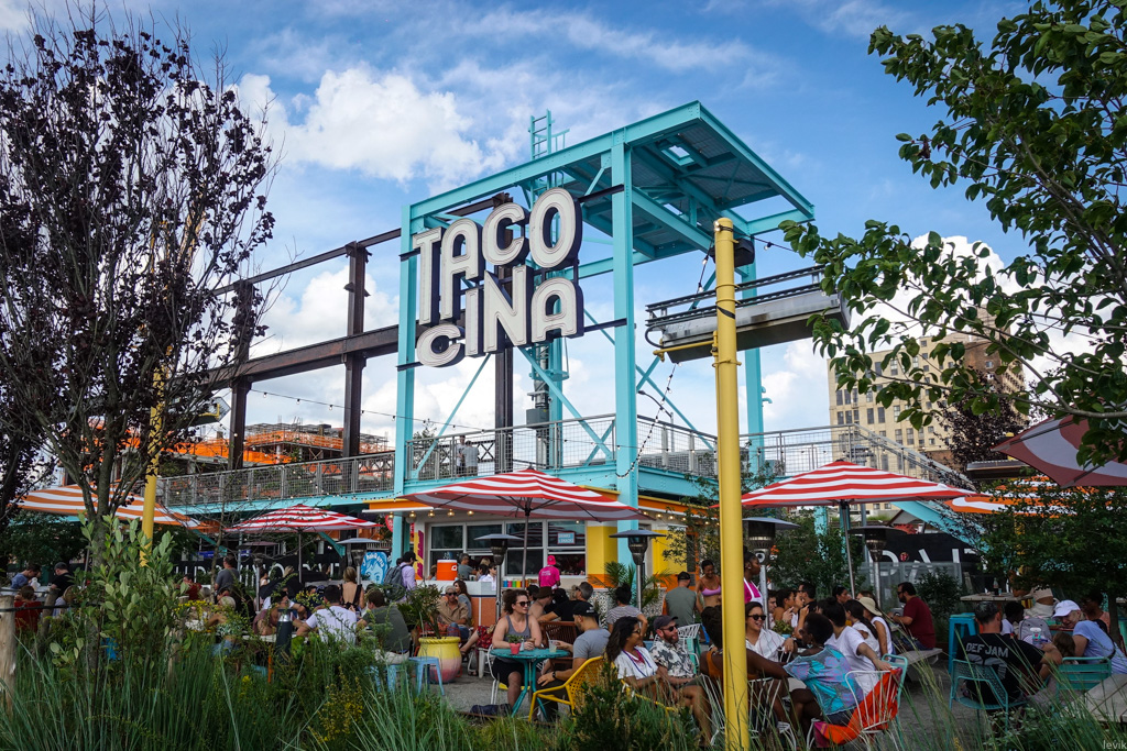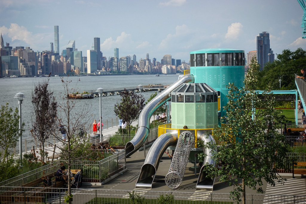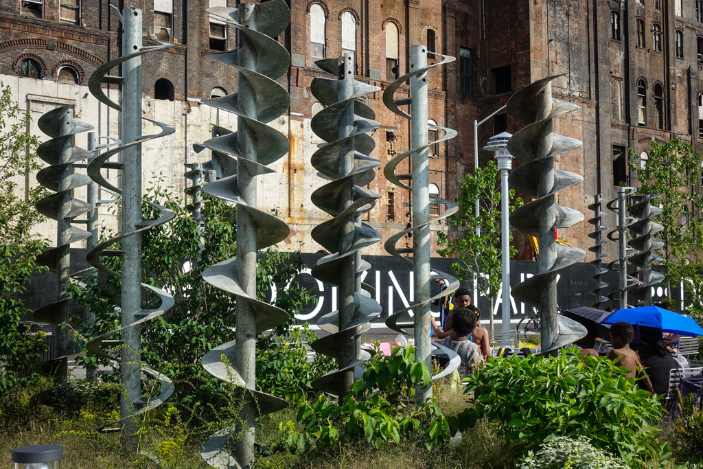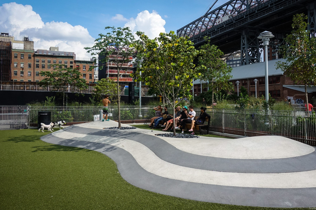 7. Как и более знаменитый Хайлайн (у которого тоже интересная история), Домино-парк вытянулся вдоль одной длинной прямой. В данном случае, это берег Ист-ривер.