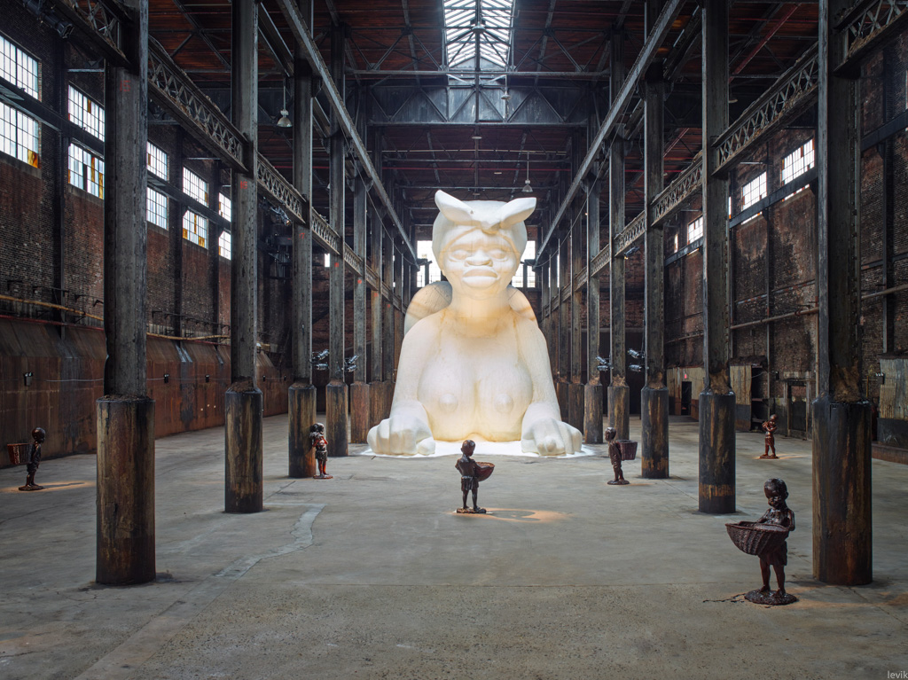 4. Кстати, пару лет назад, перед тем, как здание завода окончательно закрыли на реставрацию, его открыли для посетителей. Внутри можно было увидеть огромную белую скульптуру голой африканской женщины, лежащей в позе Сфинкса.