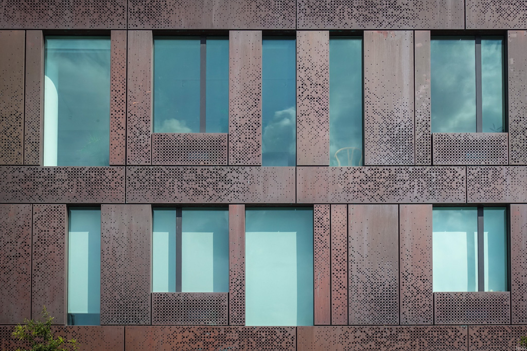 31. Его стены облицованы необычным дырявым железом, чтоб соответствовать индустриальной тематике нового квартала.