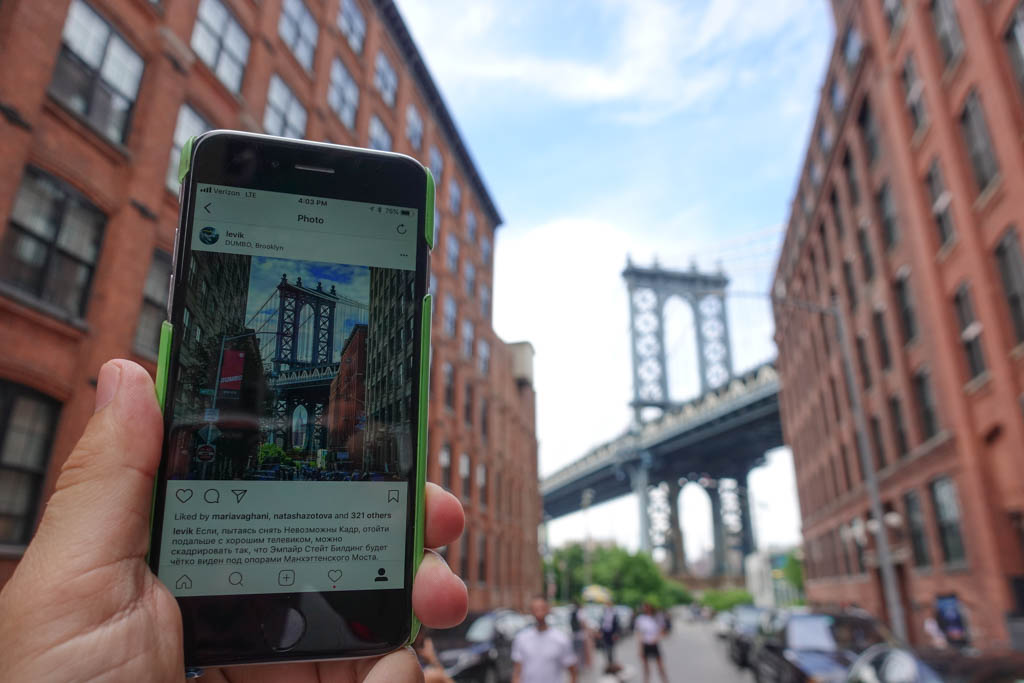 Я несколько раз рассказывал вам про место в Нью Йорке, которое нельзя сфотографировать. Это довольно знаменитый вид на Манхэттенский мост, который показывали в том числе в фильме "Однажды в Америке". Подробно можно прочесть в основном моём посте, но если вкратце, то фишка тут в том, что когда стоишь в этой точке, то Эмпайр Стейт Билдинг на дальнем берегу попадает прямо между опорами моста. Но на всех фотографиях он выглядит абсолютно крошечным: